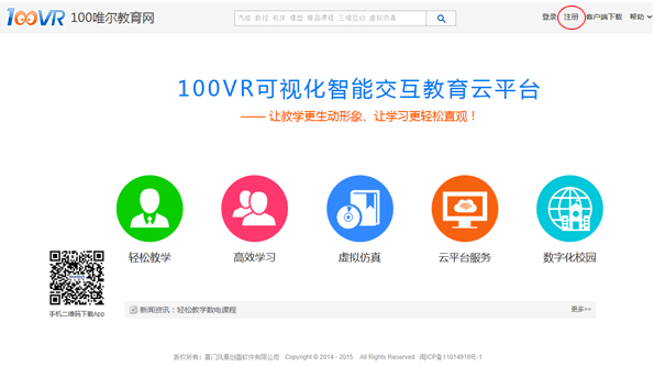 公司目前已啟動投資3億元人民幣、在全國范圍內建設10000臺服務器規模的虛擬現實VR/AR/MR在線教育云平臺(100vr.com)項目,把已經開發的110個專業大類700多門課程的VR/AR/MR教學資源與仿真資源通過云平臺為用戶提供快速便捷的服務,為全國各大院校、企業職工培訓、技術技能學習、職業技能鑒定、在職培訓終身教育提供“人人皆學、處處能學、時時可學”的智慧教育平臺。